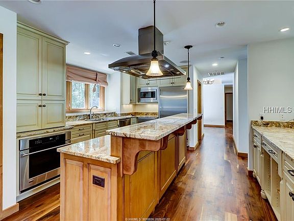 In excellent condition. Remodeled in 2020. The interior finishes of this home are outstanding. Architecturally designed and detail finishes. All on one floor. 3rd BR has been converted to a den. Features include: inlaid pine tray ceilings, wood floors, granite tops, stainless steel appliances, solid wood door, 2 master suites, chef's kitchen with granite counter tops and stainless steel appliances, smooth ceilings & new carpet. View of Long Cove's 15th Fairway. New driveway and freshly painted both inside and out. Plans available for 2 BR's over the garage. A turn-key property - ready to move in. Sellers are SCREA's