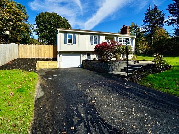 Completely remodeled raised ranch with double foyer entrance sitting beautifully at the end of a newly paved driveway on a retreat lot offering privacy and large front, back and side yard. Hardwood flooring with raised hearth brick fireplace on the first level. Open concept floor plan combining living room, dining room and kitchen. Kitchen with new cabinets, granite island and countertops. All new stainless steel appliances. Brand new full bath, three bedrooms newly carpeted and new windows throughout. New roof. New lighting schedule. One step from the kitchen to a large fenced in backyard. In a neighborhood with great access to route one and shopping. Very bright lower level is a walkout with two rooms and one with a second raised fireplace. Lower level has a storage area which has the utilities and new oil tank, new heating system, town water and private well and town sewer. Good sized one car garage with newly finished flooring. Plenty of room for a car and lawn equipment/lawn furni