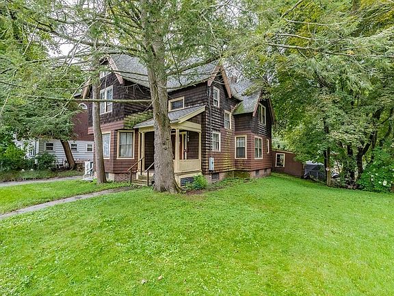 Go back in time to when they built houses with real character. This sizable 4 bedroom, 1.5 bath house has beautiful features, such as hardwood floors throughout, detailed trim inside and out, original pocket doors, multiple built-ins, leaded glass accents, a formal entry hall, and large butler's pantry. With over 2,000 square feet of living space, you'll find each room is spacious and filled with natural light, with lots of room to spread out, and plentiful storage. It has seen better days, but could easily shine again with some TLC. Newer updates include brand new roof, mini-split system, electrical panel, oil tank, and walk-in shower. A walk-up attic, dry basement, and a one-car detached garage are some additional attributes of this grand home. Look past it's need for paint and see how magnificent this property could easily be. It's definitely worth a look!
