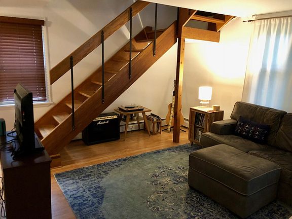 1 bedroom + loft! Welcome home! This is an airy 1 bedroom + loft house in Corn Hill. This listing is for a house with its own entrance, yard space, etc. There's 1 bedroom and 1 bathroom plus loft space that can be used as an office or lounge space. Tons of character and well-kept historic details: vaulted ceilings, open staircase, exposed beams, a mix of original and updated light fixtures, private entry, many tall windows, hardwood floors. Tiled bathroom and first floor laundry room/mud room/storage. Adorable kitchen with some historic cabinetry. Unit will be professionally cleaned before you move in. Outdoor space -- patio and yard with privacy coming from lilac trees and pine trees. It is a quiet and friendly neighborhood. One off-street parking spot included. Additional street spots for residents only can be purchased from the City of Rochester for just $24/year. Water and garbage included. Tenant pays for RG and E. Landlord will pay for Greenlight installation fees once Greenlight is available. Spectrum substation right across the river always ensures speedy internet in the meantime. Lease start date of 1/1. Landlords work downtown and live close by (no absent landlords!). Individual showings can be scheduled with appropriate notice for the current tenant. Great, quiet location -- just one block to Corn Hill Landing. Walk/bike/drive within just a few minutes to downtown, the South Wedge, Park and East Ave, NOTA, Highland and the U of R / Highland area. Great proximity to 490. One block to the Adams Street Recreation Center (field, tennis court, playground). Walk/bike the Genesee Riverway Trail just a block and a half away. Enjoy the Corn Hill Festival right off the back patio! Easy walk to Jazz Fest and Fringe Fest. Pets, such as a cat or a small dog, are welcome with a reasonable pet security deposit. Corn Hill is a very dog-friendly neighborhood! We unfortunately do have lots of dog breed restrictions per our insurance, though. We are very sorry, but please do not apply if you have a dog with any of the following (purebred or mix): any type of pit bull, German Shepherd, Staffordshire Terrier, Rottweiler, Presa Canario, Chow Chow, Doberman, Akita, Mastiff, Cane Corsa, Great Dane, Alaskan Malamute or Siberian Husky. Two off-street parking spots included. Additional street spots for residents only can be purchased from the City of Rochester for just $24/year. Water and garbage included. Tenant pays for RG&E. Landlord will pay for Greenlight installation fees once Greenlight is available. Spectrum substation right across the river always ensures speedy internet in the meantime. Pets, such as a cat or a small dog, are welcome with a reasonable pet security deposit. Corn Hill is a very dog-friendly neighborhood! We unfortunately do have lots of dog breed restrictions per our insurance, though. We are very sorry, but please do not apply if you have a dog with any of the following (purebred or mix): any type of pit bull, German Shepherd, Staffordshire Terrier, Rottweiler, Presa Canario, Chow Chow, Doberman, Akita, Mastiff, Cane Corsa, Great Dane, Alaskan Malamute or Siberian Husky. No smoking.