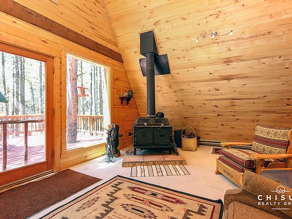 Come explore this quintessential A-Frame style cabin in the woods where the stress of the big city just melts away. This cabin will bring you back to a simpler time. A place where time slows down, wildlife roams free, usually outside your windows, and the only noise you'll hear is the chirping of the birds and blowing breeze. This cabin will help you connect with nature as you sit on the large front deck that was cleverly built around 2 large pine trees. Inside, you'll enjoy the rustic details, like wood paneling, wood burning stove and of course the large windows that seamlessly transitions outdoors in. Two bedrooms plus a full bath are on the main level while the upstairs features another guest bedroom, full bath and a loft / sitting area. The downstairs bath was recently upgraded with Mexican tiles that brings a touch of southwestern into the rustic mix. This cabin would be a fun, and very affordable, getaway for you and your family to beat that summer southern heat. The cabin comes fully furnished and ready to enjoy!