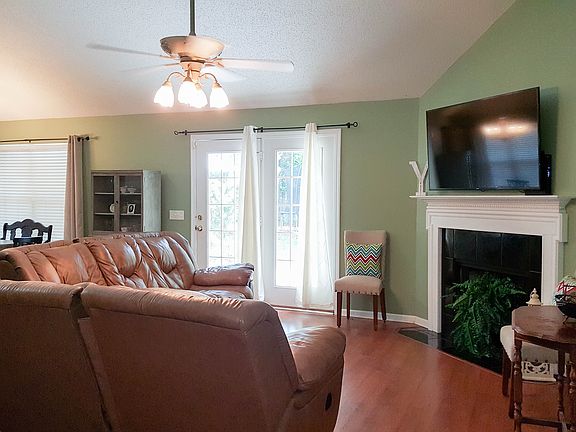 Home is located in desirable neighborhood of Bridgewater. It features an open floor plan with eat in kitchen/dining and snack bar open to family room, high ceilings and fireplace. 3 bedroom/2 bath split floor plan. Tray ceiling and large walk-in closet in the Master. Garage has been partially enclosed to create a multi-purpose room and storage area, but can easily be converted back to a 2 car garage. Some features of this home include: walk-in laundry room, floored attic above garage for lots of storage space, a shed and oversized concrete patio in the backyard, carpet and HVAC was updated in Oct. 2015, a large shaded backyard with mature trees for plenty of shade, and walking distance to elementary and middle school. Neighborhood features: salt water pool, new playground, landscaping, street lighting, sidewalks, low HOA fees, year round activities (see below).