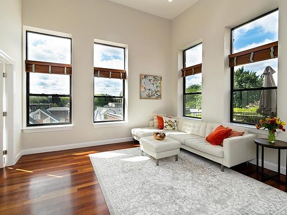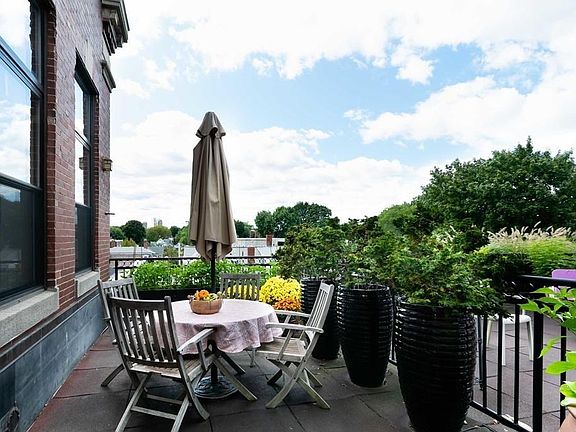Top floor, luxury condominium located in Cambridgeport, right in front of Dana Park. Sun-filled unit with open floor plan, Boston/Cambridge skyline views, 14 ft ceilings, tall windows, renovated kitchen, hardwood floors, in-unit washer/dryer, central AC, a bookcase-lined library with circular ceiling, and a private patio. Amenities include a fitness room, club room, heated garage parking, elevator, storage unit, and concierge. Close to Central Sq, Harvard Sq, and Kendall Sq, walk score of 91, bike score of 99.