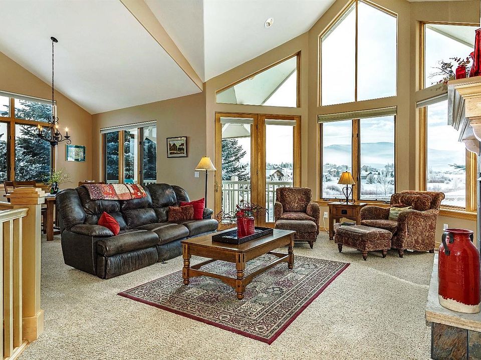 Price reduced on this immaculately maintained home with vaulted ceilings and a bright, open floor plan. Main level master, beautifully updated master bath and kitchen and large 2nd master on lower level. Big South facing windows with unobstructed views of the mountain vistas. Perfectly located across from the 18th green and walking distance to golf, pool, restaurant and other amenities. Furniture negotiable. The cozy park next door is like having an extra yard! Can't beat this value!
