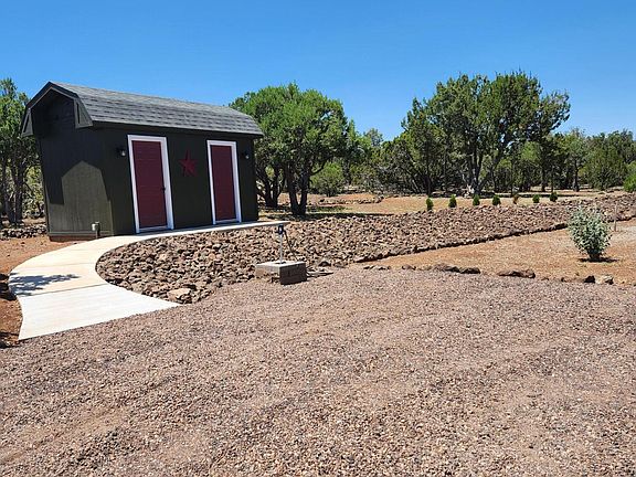 Landscaping includes - Arborvitaes, Cherry and Nectarine fruit trees, Lilacs, Forsythia, Irises, Lavender, Herb garden, Birdnest Spruce, Maple tree, Pine tree, Poplars and many native Pinon pines. Fenced along the rear of the property.