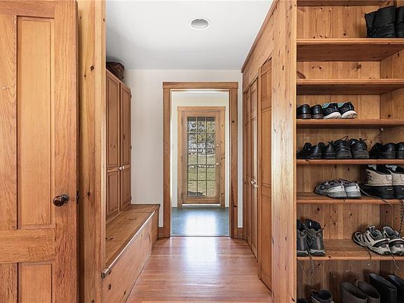 Welcome to the P. Carpenter House, ca. 1774. Carefully stewarded by the current owners for the last 40+ years, this classic Farmhouse Cape offers historic charm balanced with numerous updates and thoughtful renovations. Features include wide plank floors, an unusually flexible and open floor plan with a 1st floor bedroom option + full bath. There is also a sun-filled dining room, a lovely screened porch, and a laundry. A spacious mudroom leads to an oversized attached 2-car garage plus greenhouse, wood room, and a storage space above. The second floor has three bedrooms, a bath, a dressing room, and a fantastic loft studio space. Recent improvements include exterior painting and new mechanicals; solar panels (owned, not leased) which provide significant savings on electricity costs for the home. The beautiful and well-established perennial gardens include a rain garden and well-cared for trees, one of which boasts a treehouse. A detached 'sugar house' provides plenty of additional storage and another studio opportunity. Whether it's an easy commute to Providence or Boston that appeals, this rural yet convenient location is hard to beat.