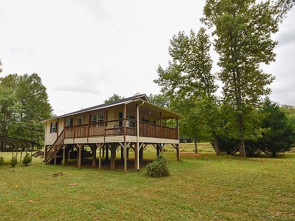 Welcome to Coweeta Treehouse. The creekfront vacation home you've been searching for is now FOUND. Wow - what a perfect getaway spot for your family, and a fabulous VACATION RENTAL opportunity! Surrounded by water on 3 sides... a lake, a stream & rushing Coweeta Creek. Calling all trout fishermen, the fishing is superb! This 2005 home was built on stilts to protect it from flooding. Inside you'll find a squeaky clean, move-in ready and fully furnished space with living room, dining area, kitchen, 2 bedrooms, laundry area & a full bath. But you'll spend most of your time on the covered porch, enjoying the sounds of the creek. The yard is gentle and everything you need will stay for your use, including the riding lawn mower and tools. The property also features a very nice shed and a 2-car detached carport. It even currently has Morris BB internet! Watch the kids play on the gentle lot and roast s'mores in the firepit at night. This is where your family's mountain memories will be made!
