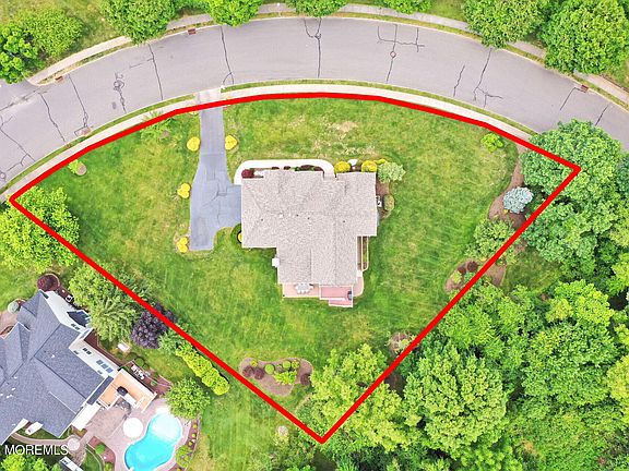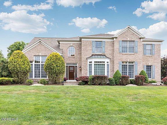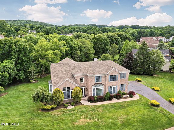 Welcome to your new home at 20 Crape Myrtle Drive, nestled in the coveted Holmdel Ridge community of Holmdel. This stately residence, built in 2000 on a generous .87-acre lot, boasts timeless elegance and modern conveniences across approximately 4,000 square feet. Recently upgraded, the entire interior has been freshly painted, and all brand-new hardwood floors have been installed, adding to the home's refined appeal. Crafted with a classic 3-sided brick exterior, this home features 4 bedrooms and 3.5 baths, offering ample space and privacy for the whole family. A grand entrance awaits through the 2-story foyer, leading to a spacious great room flooded with natural light, creating an inviting atmosphere for gatherings and relaxation. The heart of this home is the updated chef's kitchen, adorned with granite countertops and stainless-steel appliances. Adjacent, a butler's pantry complete with a wine fridge and sink adds a touch of sophistication, perfect for entertaining guests. Dual staircases, both front and rear, enhance the flow and accessibility throughout the residence. Upstairs, all bedrooms include walk-in closets, with the primary bedroom suite featuring his-and-hers walk-in closets for added luxury and organization. The potential for expansion continues with a full daylight walk-out lower level, already plumbed for a bathroom, awaiting your personal touch. Outside, the expansive grounds offer endless possibilities, including ample space for a future pool, complemented by the southern exposure that floods the home with sunlight throughout the day. Conveniently located, this home provides easy access to major transportation routes, Hazlet train station (less than 1 mile away), the GSP, as well as top-rated schools, fine dining, and a host of amenities, ensuring a lifestyle of comfort and convenience.