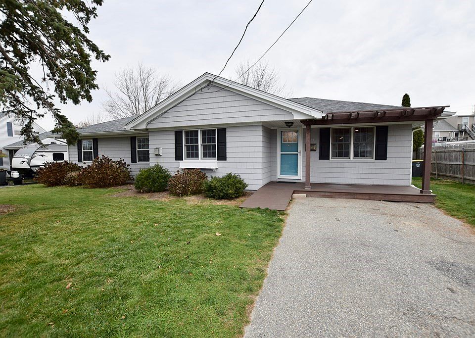 This Oversized Ranch is wonderful 1-level living, recently renovated w/high-end details. Enter under the pergola-shaded front deck into the open front-to-back living room w/custom transom windows and an extra-large sliding glass door to the multi-tiered Trex deck. The entertaining space flows through a formal dining room w/gorgeous gas fireplace, dine-on peninsula and designer kitchen. Beautiful fine finishes abound such as tumbled-tile backsplash, pantry closet, gas cooking, tile floor, custom cabinetry, solid-wood raised-panel doors. Three good-sized bedrooms host hardwoods throughout, custom blinds and closets galore. The bath is upgraded w/tile, rich wood cabinets, tub & shower. Fenced yard with gate to additional deeded parking spaces. Well-maintained, NEW in 2018: roof, exterior paint, refinished floors, gutters, replacement windows, high-efficiency heat and H2O tank. NEW in 2021: TREX decking, front ramp, vinyl siding on big shed, thermostatic-control in fireplace, refrigerator.