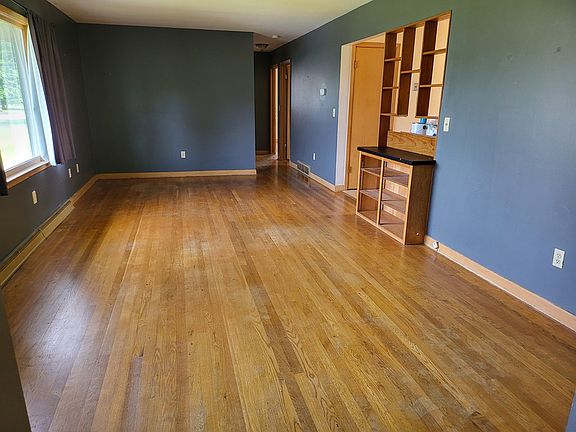 Nice 3 bedroom, 1 bath home. Oak cabinets in the kitchen, eat-in area attached. Living room is quite large, nice size picture window to allow the light in. Two decent sized bedrooms, one smaller. Hardwood floors in the living room and bedrooms. Full basement to allow extra room to expand. Screened porch on the back, shed, one car attached garage. New siding.