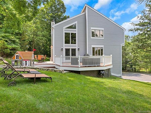 The heart of this home is the sunny, spacious family room with cathedral ceilings, new gas log fireplace and a wall of glass. An updated contemporary, with an open floor plan, is perfect for entertaining large gatherings. Open the glass doors and relax with a book and a cup of coffee on the maintenance free Fiberon deck. Enjoy entertaining in the updated eat-in kitchen, with stainless steel appliances, granite counter tops and breakfast bar; the perfect spot for all your coffee gadgets. Or, walk to town and grab a Starbucks on your way! This home has been smartly improved upon and is very efficient to run. Owners hooked up to natural gas and installed new gas appliances: a highly efficient (95%) gas furnace, new water heater, clothes dryer, double oven and gas line to BBQ grill on deck. Smart technology also means being in control of the house even when you're not home! Monitor security, heat, A/C and irrigation system while away. Check to see if the kids got off the bus (which stops at the end of the driveway), and allow deliveries into the garage. A very efficient home run on natural gas, sewer and city water; it's the tri-fecta of suburban living! Master bedroom has an oversized, walk in closet, perfect to keep you organized! Two more bedrooms, w/double sized closets and an updated hall bathroom, round out the 2nd floor. The lower level has another 300 sq ft of finished space, includes an office/den, plus nearly 400 sq ft of storage in the laundry area.