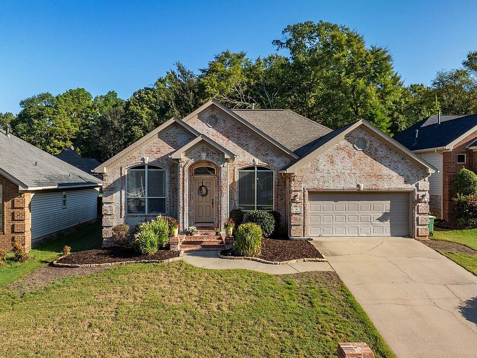 This custom-built home provides 1,619 sq. ft., and offers 3 bedrooms, and 2 full baths, blending contemporary comfort with style. Inside, hardwood floors grace the main areas, while all bedrooms boast new plush carpet. The kitchen shines with granite countertops, a matching island, stainless steel appliances and a gas range. A cozy gas fireplace with remote control adds to the elegance of the living room. The spacious primary suite features vaulted ceilings and a luxurious en-suite bath with a jetted tub, dual vanities and two walk-in closets. Additional features include a separate laundry room and a two-car garage. The classic brick exterior and large, fenced yard offer both charm and privacy. HVAC replaced in 2016 with a new coil in 2023. Schedule your private tour today!