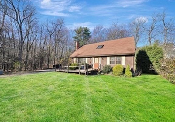 Private lot and surrounded on two sides by woods! This seven room dormered Cape is situated at the end of a cul-de-sac! Close to shopping, this 4 bedroom, 2 bath Cape is great for a growing family with 2 bedrooms and a bath on the first floor and two large bedrooms and another full bath on the second floor. Second floor landing has a skylight and a seperate cozy area for enjoying a good book! Two double closets in second floor main bedroom. Two zone heating. Full basement has a partially finished, paneled area for additional living space.