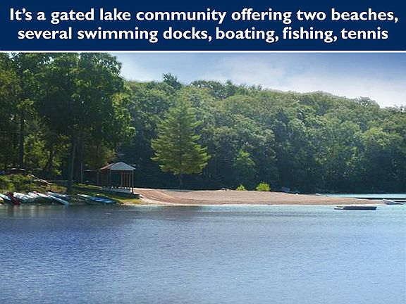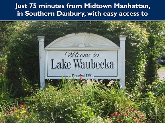 For more information, visit www.lakewaubeekahome.com; or for similar listings visit www.ryancornell.com. Lake Waubeeka, a Gated Waterfront Community, just 75 minutes from Midtown Manhattan, with easy access to Route 7 and I-84, shopping, and fine restaurants. Two beaches, swimming docks, boating, fishing, tennis, basketball, baseball, shuffleboard, Bocce, walking/running track, clubhouse, playground, hiking trails. Community has about 250 homes, from cozy cottages to remodeled and expanded Mid-Century homes. Approximately 550 acres of undeveloped woodlands preserved/protected. Move-in Ready. Enjoy ranch-style living all on one level, with a Great Room with soaring ceilings and fireplace, access to a large deck overlooking the babbling brook, seasonal lake views and privacy.