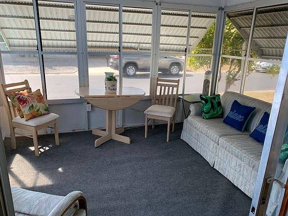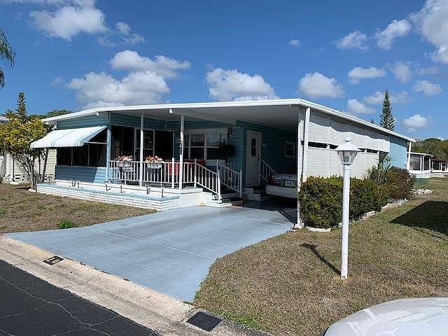 Just Listed $44,900 Partially Furnished Welcome to the gated community of Planation Village! This cozy home comes partially furnished with 2 bedrooms and 1.5 baths. The exterior has been painted in a tropical blue. The front features a covered patio area. This is a wonderful spot to sip your coffee and watch your neighbors go by. The driveway has a carport and storage shed. The storage shed is very large and hosts the washer, dryer and wet sink. Plenty of room for your holiday decorations and beach gear. Stepping inside the home from the carport you enter the open kitchen. The kitchen has updated cabinets. Large living room that accommodates a sectional sofa comfortably. The sliding glass doors in the living room lead out to the front enclosed Florida room. This room has slider windows making it a year-round room. The main bathroom has an updated step-in shower and a nice sized vanity with storge underneath. The bedrooms are both spacious with nice sized closets. This home is available May 1st, 2022. Call today to make this your Florida dream home! Plantation Village is a Co-op 55+ Community. The lot rent is $ per month and includes water, sewer, garbage, lawn maintenance, cable and WIFI. Activities include 2 pickleball courts, 2 bocce ball courts, horseshoe pit, heated pool, shuffleboard courts, library, exercise machines, pool table, and a picnic area with a grill. All listing information given to us is considered appropriate and reliable but always recommend a home inspection by independent companies who have a background and thorough understanding of manufactured homes. We cannot guarantee the accuracy of information given to us or the condition of the home. Lot rents are determined by the community office not our company.