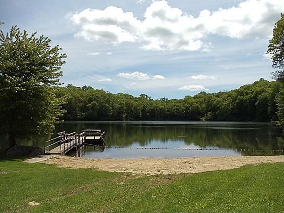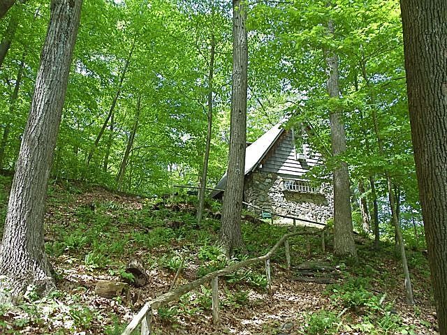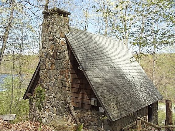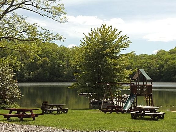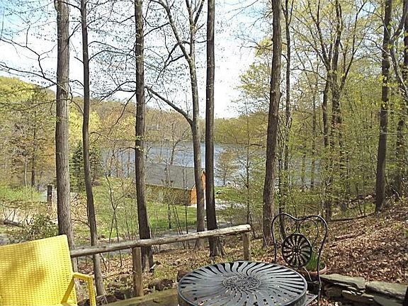 Enchanted Cottage overlooks two mountain lakes! Built as an artist's studio this charming home features a beautiful living room with cathedral ceiling floor to ceiling stone fireplace gleaming wood floors massive skylights and open loft-style bedroom with stairs. So peaceful and private! Closest house to the beach! 90 minutes to NYC just a few minutes to the quaint Village of Pawling eateries shops and two Metro-North train stations.