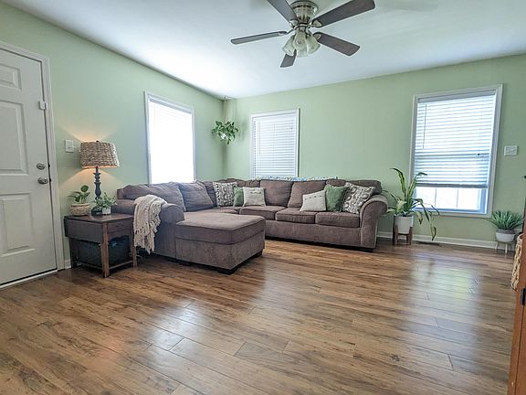 This beautiful home is waiting for you! 3BR/2BA with TWO downstairs bedrooms, (one of which can be downstairs Master BR) large upstairs bonus room, walk in attic space, downstairs laundry & 2 car side entry garage. The oversized driveway has extra parking for you and your guests to enjoy the magnificent sunsets while relaxing around the fire-pit on the stone patio or on the 12x20 deck. Large flat private backyard boasts a 6ft privacy fence, 2 storage buildings (12x16 & 10x12), and a fenced pasture. The property lines continue behind the fenced yard complete with hunting stand & trails that back up to approx 660 acres of an Old Plantation Farm. Sellers are professional landscapers and it shows in every bit of this gorgeous backyard! Gazebo, play/swing set also convey. Roof replaced 2015. Arbor and Maple Tree will be removed. (Sellers planted that tree and were married under it)