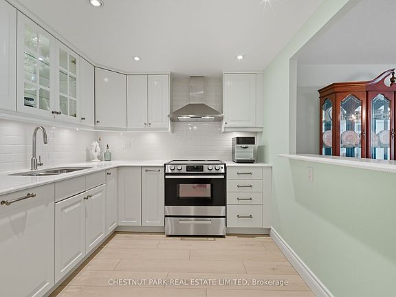 Welcome to the beautiful condo community at 20 Dean Park Rd. This charming, sun filled 1,235 sq. ft. unit boasts 2 spacious bedrooms, 2 full bathrooms and underground parking. The gorgeously renovated kitchen features white cabinetry with glass accents, stone countertops, white subway tile backsplash, stainless steel appliances with built-in dishwasher and ceiling pot lights. Overlooking the open concept combined dining and living rooms makes the living space feel open and bright. The primary bedroom has floor-to-ceiling windows, large walk-in closet and a 4-piece ensuite. The second bathroom has been stylishly renovated and features a glass-enclosed walk-in shower. An in-suite laundry room is located near both bedrooms. Step out onto your private balcony to enjoy views of the surrounding green space and lake. Building amenities include an indoor pool, hot tub, sauna, gym, outdoor tennis court, library, lounge, party room and car wash. The building has 24-hour security, ample visitors parking and is surrounded by lush gardens in the summer season with beautiful areas to walk and enjoy the outdoors. The surrounded area is rich with conservation parks, walking trails, schools, transit, quick highway access and a variety of shopping options - making this location perfect and convenient for all ages. Nothing to do but move in!
