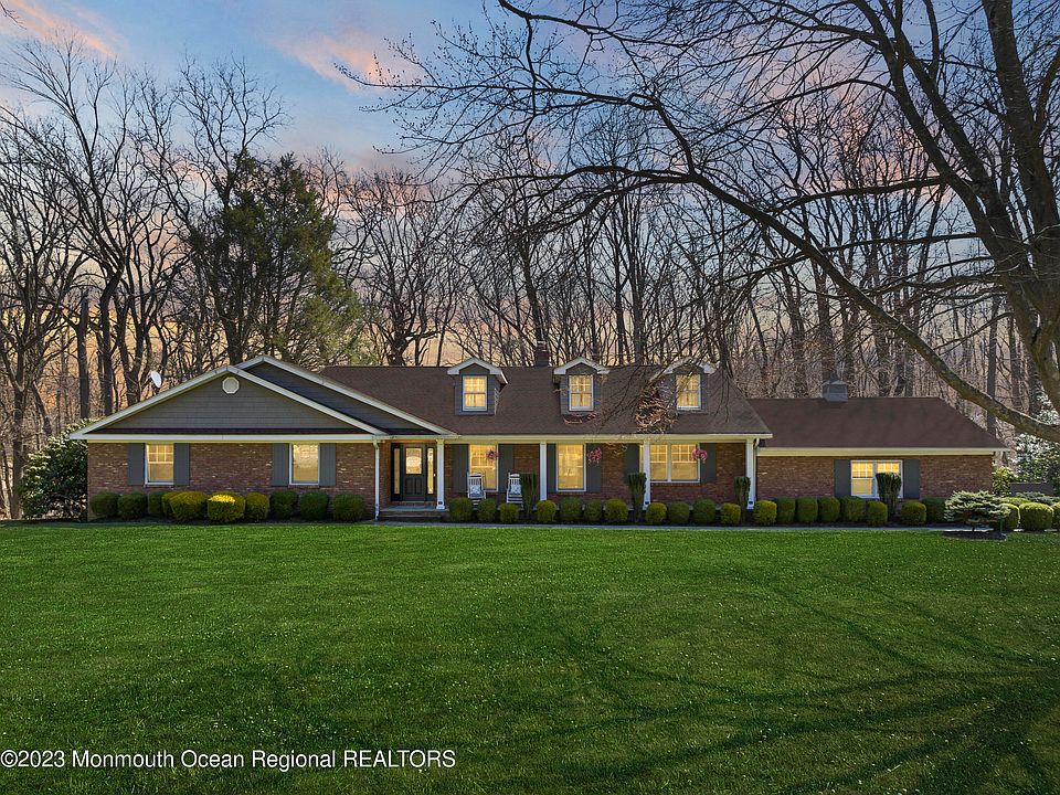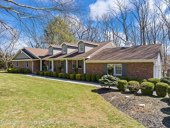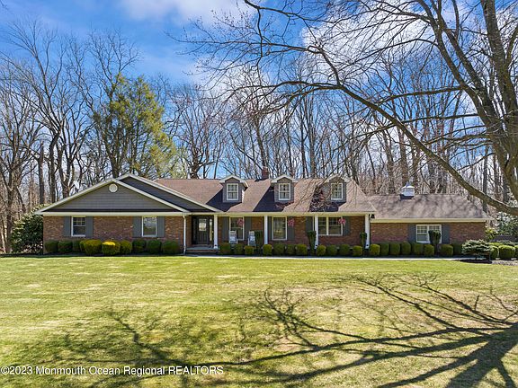 Beautifully remodeled spacious ranch! Turn key! This is truly and entertainers delight featuring 4 BR's/3.5 Baths, gourmet kitchen with built-in wood burning pizza oven, vaulted ceilings with reclaimed barn wood beams, brick fireplace. Outdoor oasis awaits you with a gourmet kitchen with built in gas grill, multi-tiered deck with sunken hot tub, koi pond and water feature. Fully finished walk out basement with wet bar, game room, tv wall for home entertainment watching, home gym and flex space. Conveniently located near the Garden State parkway, train/bus, Bell Works, Holmdel Park, shopping and the Jersey Shore beaches. Please refer to the feature list for more information. Don't miss this one!