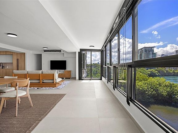 A serene, design-forward retreat in the highly coveted Condominio Del Mar. This exquisitely renovated 3-bedroom, 3-bath residence offers sweeping, unobstructed views of the lagoon and an open-concept layout that embodies calm, intentional living. Inspired by a refined Japandi aesthetic, the home seamlessly blends minimalist elegance with warm, natural textures. Nearly every element has been custom designed to deliver an elevated, harmonious lifestyle. The living area is framed by custom sliding windows that open fully from end to end, allowing the tranquil and unobstructed lagoon views to become part of the interior experience. Split-unit air conditioners in every room, including the living area, ensure comfort throughout. Smart lighting, custom sun shutters, and 4x4' matte porcelain tile flooring imported from Spain complement the home's modern ambiance. The kitchen is a true masterpiece of craftsmanship and functionality. Custom Italian cabinetry with in-line LED lighting pairs with Arklam sintered stone countertops, a premium surface capable of handling cookware straight from the oven. The integrated appliance suite is exceptional, featuring a fully integrated Liebherr Monolith refrigerator and freezer, SMEG oven, microwave, induction cooktop, and dishwasher, a Frigidaire wine fridge, and a Kohler sink. All kitchen lighting, along with the refrigerator and freezer, remain fully powered during outages, supported by six designated backup outlets. The primary suite and additional bedrooms feature custom PVC closets, offering durability and thoughtful organization. Each bathroom showcases 4x4' porcelain wall tile, accent tiles imported from Spain, Pfister rainfall and handheld showerheads, and a custom double vanity in the master suite. The building is equipped with a partial backup generator for added convenience and reliability. Additional features include an LG smart washer and dryer, LG TV, and one assigned parking space. This residence presents a rare opportunity to lease a home that combines bespoke craftsmanship, designer finishes, and breathtaking water views in one of the most desirable locations. Experience a lifestyle defined by serenity, modernity, and unparalleled attention to detail. Contact us today to schedule a private showing.