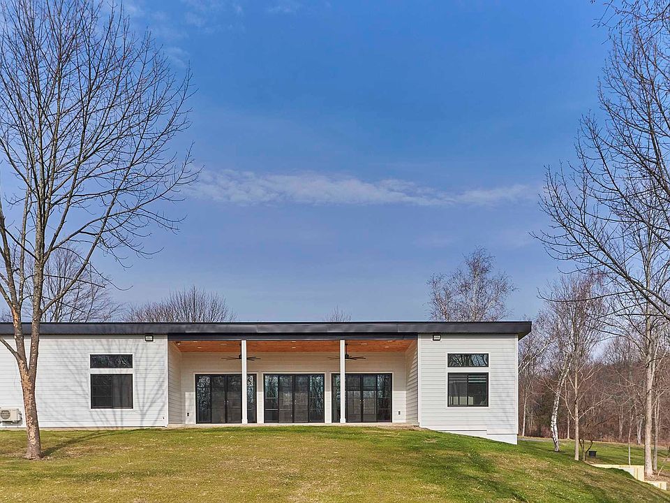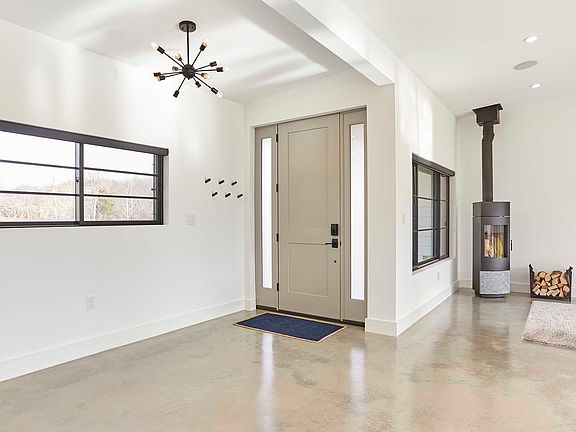 This brand new, modern home, on over 3 acres, is all about stylish simplicity combined with energy efficiency and high-quality construction. The sunny Scandi-style minimalist interior incorporates bright white walls, gorgeous industrial-look windows and stunning polished concrete floors (with 4 zoned radiant heat, of course!). The Hearthstone wood-burning stove in the open living area keeps things cozy now that winter is near. From the High-speed enterprise grade WiFi to the fresh air ventilation system, everything is top-of-the-line. The chef's kitchen boasts Viking stainless steel appliances and a quartz - topped counter to gather around. The master bedroom has a large walk-in closet and a luxurious marble bathroom with dual-head shower. The 2 additional bedrooms, with another full bath, feature similarly high-end finishes. A wall of sliding glass doors brings the light (and view) flooding in, and open to the covered patio, perfect for entertaining when spring and summer arrive. There's also a 3-car garage that's beautiful enough to live in, and a walkout basement that can be finished to add an additional 1400 sf of living space. 90 minutes from NYC. Full list of building specs attached.