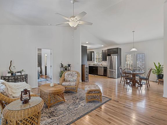 Come and take a look at this light filled home in the country on almost two acres. Enjoy the cathedral and nine foot ceilings, hickory hardwood floors, stainless steel appliances, 42 inch cabinets,wood burning fireplace in the lower level. Freshly painted and waiting you to come home. The yard is partially fenced for your animals friends. Enjoy the deck off the dining room or rock away on the front porch.