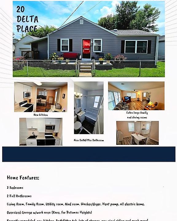 Home is one level, newly remodeled inside and outside (siding) in 2022. New water heater 2019. New roof 2018. Replaced HVAC 2010, serviced every year/last serviced June 2025 Large concrete front porch All window treatments convey: White wood blinds Additional storage in attic with lights and plywood floors. Access via pull down stairs. Nice quiet neighborhood, with common areas: playgrounds, basketball court, ball fields, swimming pool, and community building. This is all included in the monthly HOA fee. Water, sewage, trash pickup are also included in the monthly HOA fee. Oversized garage with work area and bench. This house is in the Potomac Heights Community which requires all home owners to apply and be approval by management to move into the community, before you can purchase any residence in the community. If seriously interested in this residence, I can provide you with the application paperwork, to start the process.