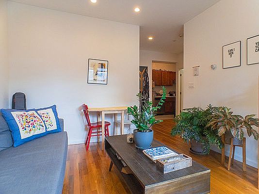 Spacious PET FRIENDLY one bedroom/one bath features hardwood floors throughout, Custom Cabinetry, Stainless Steel Appliances including dishwasher and large windows offering great natural light for those of you who love natural light great for your plants as well. You will have access to the roof deck with amazing views of the Manhattan skyline, Queens and Brooklyn just breathtaking! Individually controlled heating and AC, additionally hot/cold water is included in the rent. The bedroom can easily fit a queen size bed and dresser, and the living room can comfortably accommodate a small dining table, entertainment area, and possibly a desk by the window. Located on a quiet tree lined block in the heart of everything Williamsburg has to offer great restaurants, cafes, bars, grocery stores, bagel shops, laundromat, shopping, and McCarren park are all within your front door. L & G subway trains are just around the corner. B24, B48, B54, and B59 buses are all within close proximity. Please call, text or e-mail for a private and safe scheduled walk-through of this amazing place.