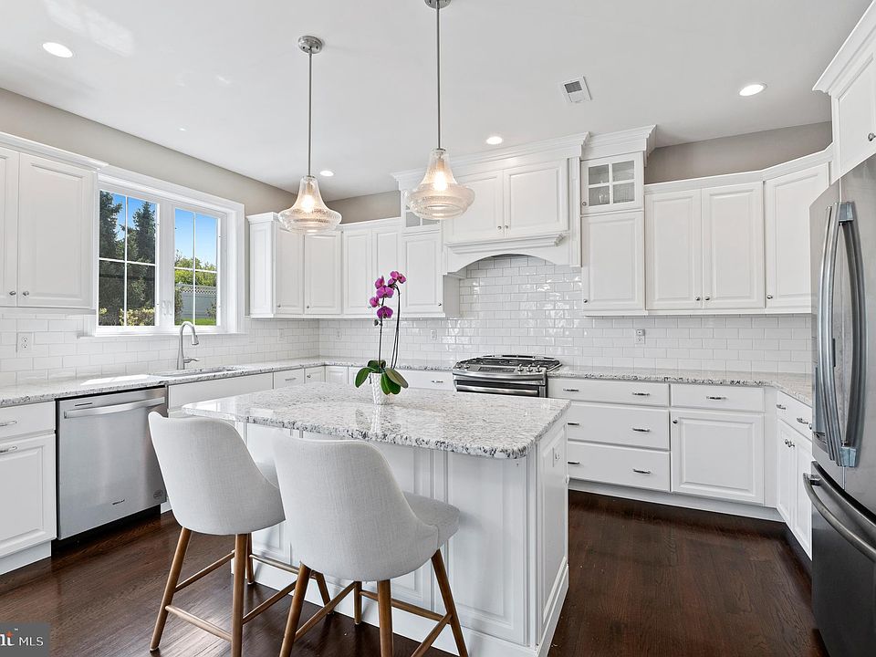 20 Dickinson Lane is a beautiful 3 bedroom, 2.5 home, built by acclaimed builder Sal Palone in the intimate community of Whitemarsh Station. This “Providence” model features soaring ceilings, crown molding, hardwood flooring, wainscoting, custom window treatments and plantation shutters. Enter into the airy 2-story foyer with hardwood flooring throughout the first floor, stairs and second floor hallway. The dramatic living room boasts 18’ ceilings and can be set up as living room or a dining room/living room combo. The open floor plan is perfect for today’s living and entertaining lifestyle. The beautiful eat-in gourmet kitchen features a large center island with wine fridge, white cabinets, quartz countertops, stainless steel appliances and room for a kitchen table. The cozy family room is adjacent to the kitchen and has a gas fireplace with slate surround. A mudroom with cubbies, half bathroom with pedestal sink and 2 car attached garage with an EV charger and epoxy floor complete this floor. The light and bright open staircase with custom window seat leads to the second floor. The second level includes three bedrooms and two full bathrooms. Enter into the primary suite through double doors into a large bedroom with tray ceiling and 2 walk-in closets with custom closet systems. The luxurious primary bathroom consists of a double vanity, soaking tub, large shower with frameless glass enclosure and separate water closet. There are two additional spacious bedrooms that share a hall bathroom with tub/shower combo. Convenient second floor laundry room. The lower level has extra high ceiling height and plumbing for a bathroom for future finishing. Playroom? Gym? Theater? Enjoy a stress-free lifestyle where the HOA does your lawn care and snow removal! Across the street from Harriet Wetherill Park. Minutes to 76, 476, PA Turnpike, Center City, King of Prussia, Conshohocken and the award winning Colonial School District!