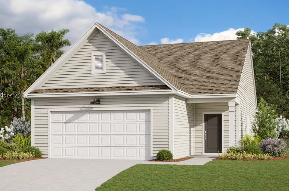 Primrose A: second vanity sink in primary bathroom, garage door opener, LVP, grey cabinets with crown molding in kitchen, quartz and backsplash in kitchen, grey cabinets and quartz in bathrooms, stove, microwave, dishwasher stainless steel kitchen appliances
