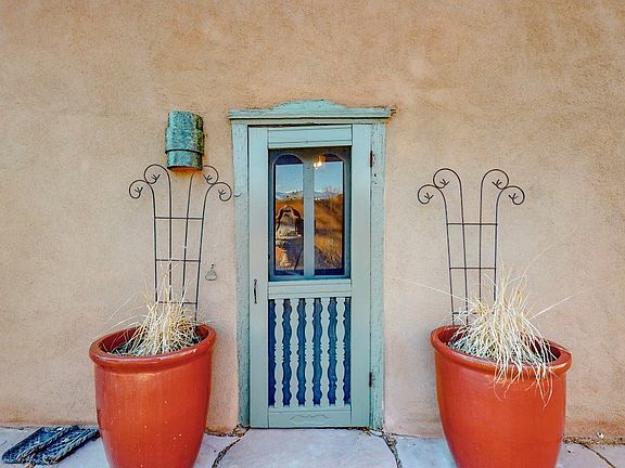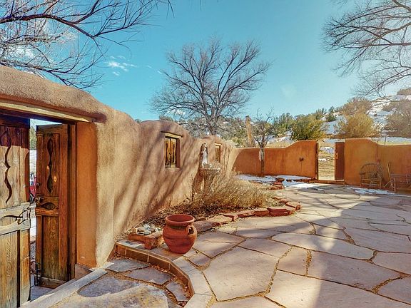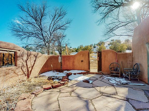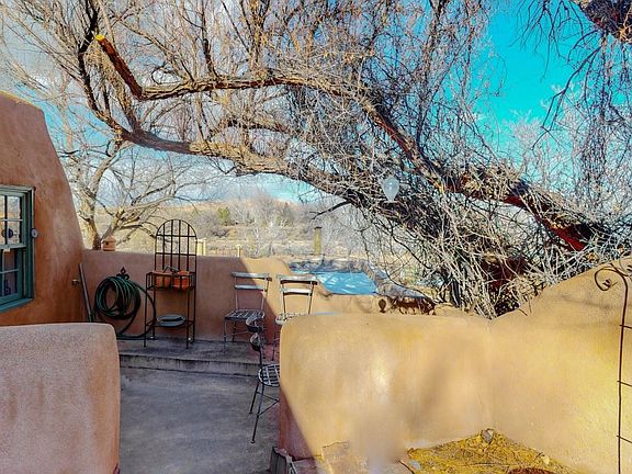 Rarely does a property with this history and charm come on the market. First time on the market in nearly 30 years. The home's original structure was built in the late 1800's with adobe bricks made on the property. The current owners have extensive remodels and nearly doubled the size with a new adobe addition in 2002. The original living room has an authentic latilla ceiling constructed by women from San Ildefonso Pueblo with willow branches collected along the Nambe River. The 2743 sq. foot house is constructed of double adobe walls, hand troweled plaster walls, vigas and/or coved 10 to 12 feet high ceilings, and four lovely new kiva fireplaces. The master bedroom has a romantic kiva fireplace, a walk-in cedar closet, and a large new bathroom with a deep soaking tub and separate shower. There are two smaller bedrooms, bathroom with claw footed tub, formal living room, study, kitchen and pantry, and a large open dining and family room, with a small central courtyard, and French doors opening onto a portal. The deep, inviting portal with fireplace is a perfect setting for outside entertaining most of the year, and has unobstructed sunset views of the Barrancas and the Jemez mountains. There is a charming attached but separate 1094 sq. foot guest house with bedroom, bath, living, dining and family rooms. This entire 6.67 acre property consists of two legally subdivided lots, upon which you could easily build another house. Pre Basin Well *see more in docs
