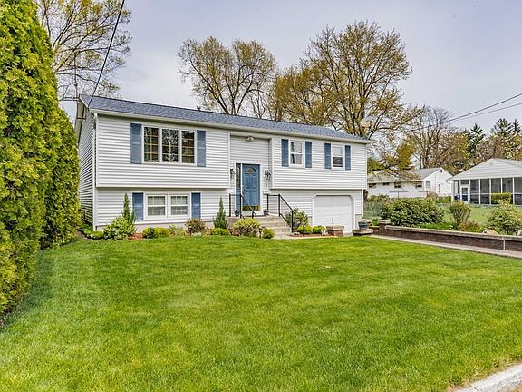 Wonderful raised ranch on a beautiful lot in Indian Orchard. This home features 2 full levels of finished space. The main level has Hardwood floors in the living room and all 3 bedrooms, an updated kitchen with granite counter tops, stainless steel appliances and a large dining area. There is a slider to a nice trek deck and a large flat private yard with a storage shed. The living room is large and has a bay window letting in lots of light. The main floor bathroom has been remodeled with tiled tub and new vanity. There is access to the master bedroom from the bathroom. The master features plenty of closet space. There are two other bedrooms on the main floor. Heading downstairs, you will be thrilled with the bar in the large basement family room, the slider walk-out to the backyard, a laundry room and a large walk- in pantry closet. There is a 1-car garage that is accessed on this level as well.