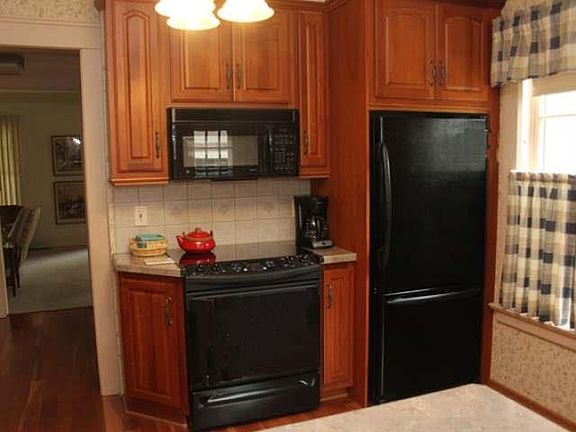 Beautiful Cherry kitchen, cherry floor, living room with a woodburning fireplace and 4 large bedrooms. 1.5 baths on the upper floor, and 1/2 bath on the lower level. Large front porch and a patio on the back. Located within walking distance to schools. This home is MOVE IN CONDITION and spotless. A must see home!
