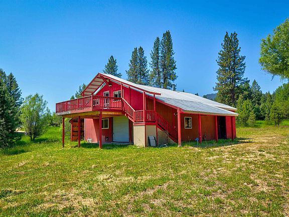 This log cabin, located just minutes from the town of Crouch is tucked privately away on 5+ acres of trees and rolling pasture. Huge windows with high end remote controlled shades take advantage of the natural light and beautiful views. Open floor plan and tall vaulted ceilings. High end laminate flooring and new blinds added recently. The wrap around deck is great for entertaining. Soak under the covered patio in an almost brand new hot tub. If the over sized two car garage isn't enough room, the 40x30 shop is hopefully big enough for all your toys or hobbies. The pasture and grass are all watered by an in-ground sprinkler system. Deer, elk, turkey, and quail are all constant visitors. You truly have to see this property in person to experience the full beauty.
