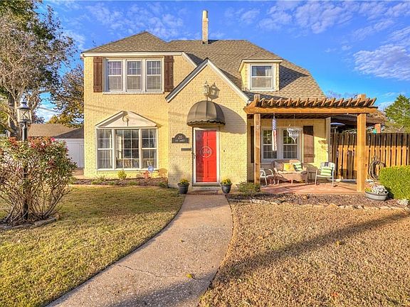 An absolute charmer! From the wood trim detail and beautiful flooring inside to the spacious backyard perfect for kids to play and adults to relax/entertain friends you won't want to leave! Perfectly situated off Broadway this home has a darling front sitting porch with pergola creating curb appeal. Inside you'll find beautiful arched openings, original trim work and wood floors that have been re-finished, updated light fixtures, granite and updated stainless appliances in the kitchen combined with brick flooring, spacious main living area, formal dining/second living area & adorable half bath. This property has 2 main levels plus a finished 3rd floor room that could be a 4th bed, office, game room, etc. In the back are storage sheds, a playhouse, and large jungle gym in addition to the pool. Combine that with plenty of grass to run and play and shade trees and you have a picture perfect backyard.
