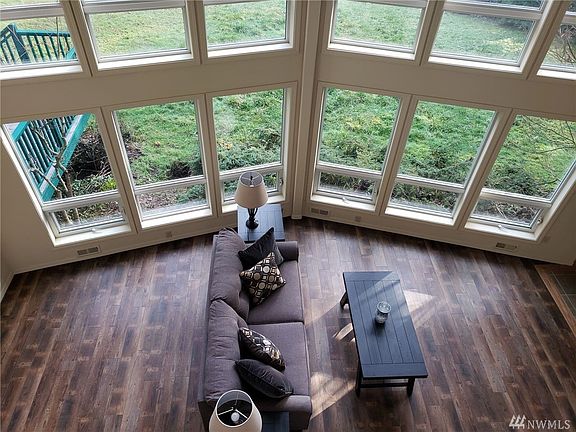 This Northwest contemporary 3 bedroom 2.5 bath cedar home enjoys an excellent view of Pickering Passage from both the interior and the spacious deck looking out over the water, As well as a private beach with private access. It has been completely remodeled, new windows, flooring, and fixtures. Master bedroom and bath with garden tub. Large shop plus large garage/shop. 1798 sf