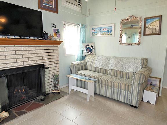 Very Rare! Three houses from the beach and on OWNED land! This adorable cottage sits only about 100 feet from the beach in Ocean Beach III, so close you can hear the ocean. Most homes in this location are on leased land, so opportunities like this don't come up often. If you like small living, move right in and enjoy the warmth of the fireplace on cool nights and the cool breeze on the covered porch on hot days. Or, you can enjoy the home while you plan a new larger home that can be raised high off the ground with a rooftop deck that will have a spectacular view of the Atlantic. Features also include newer wall air conditioner, gas fireplace with thermostat, ceramic tile floors, and vaulted, white-washed wood ceilings throughout.