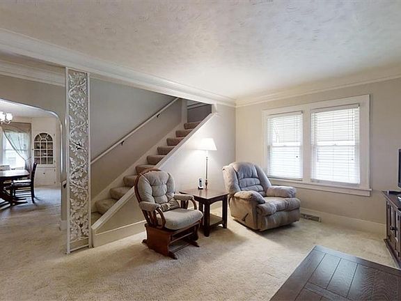 This cozy four bedroom brick bungalow in The Elms is surprisingly spacious and just beckoning for you to call it Home! Enjoy entertaining in the large yard, tinker (or park!) in the generous detached two car garage, or just have a hang out with friendly neighbors. There is room to spread out inside with two main floor bedrooms, arched entryways in the living room, built in corner cabinetry in the dining room, and an open wrought iron staircase leading to two upstairs bedrooms and a generous open flex space that can be an office, a family room, or even playroom. A fully renovated kitchen (2015) spared no expense with top of the line finishes, new appliances, and creative storage. Additional storage in the large, partially finished basement. Don't miss this sweet gem - call today to see everything for yourself and make it your own!