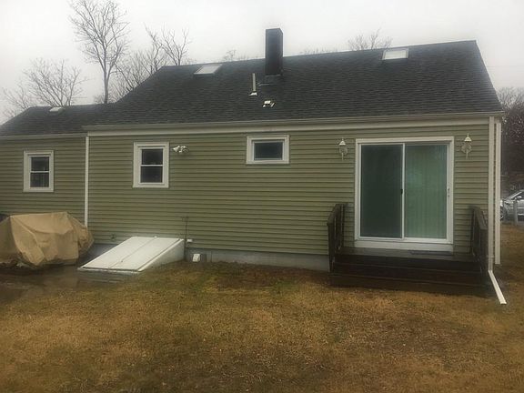 Completely renovated Cape on double lot! The entire home was renovated in 2013 with new kitchen, bathrooms, flooring, lighting, roof, vinyl siding and windows. This home features an open floor plan, granite eat in kitchen with stainless appliances and first floor master bedroom. Family room open to living room with exterior access to rear yard. 2 upper level bedrooms with skylights, built in drawers and new wall-to-wall carpeting. Partially finished basement ideal for office or playroom. Property is a short walk away from local beach. Private Rear Patio. New heating system in 2006, new hot water tank in 2012. Passed Title V inspection. Move in ready