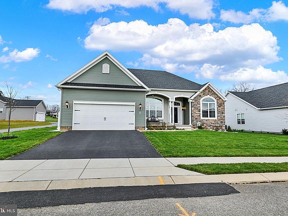 Welcome to this lovely former Model Home in the Mayberry at Stewartstown community. You will be hard pressed to find a home as well cared for as this one! Owners have made several improvements during their residence here. If you love to entertain, welcome to this open concept home. Upon entering the home, you will see the foyer, great room, kitchen, dining area and formal dining room. To your immediate right, you will notice a spacious office with an abundance of natural light, next you will find the hall closet and powder room. Just beyond, is the primary suite complete with coffered ceiling, spacious sitting area, walk in closet and full bath featuring a walk in tiled shower and double bowl vanity sink. Crossing the great room and kitchen to the left side of the home, you will find two additional bedrooms and a second full bath. As we cross the kitchen back toward the front of the home just beyond the pantry on the right, is the mud room area and full laundry with counter to sort and fold. On your way to the garage, the basement door is on the right hand side. The basement is immense and ready for your full finish! The garage is oversized and neat as a pin. Outside the rear of the home, just off of the daily dining area, is a lovely stamped concrete patio perfect for entertaining! Your yard is surrounded by a privacy vinyl fence and enhanced with a coordinating shed for your garden and lawn implements. The walk up basement stairs also are accessible from the yard. Of course when you pull up to this gorgeous home, you will see the front porch and perfectly maintained flowerbeds and lush lawn. The attention to detail from these owners is unparalleled.