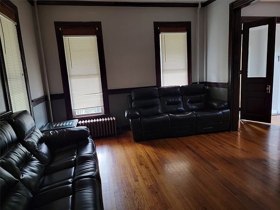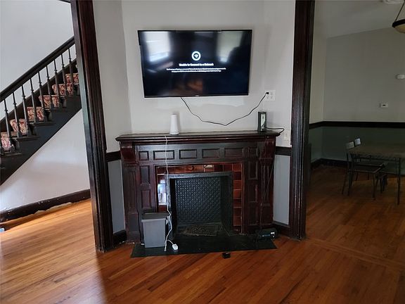 This updated and spacious single-family is an absolute gem. The hardwood floors gleam and the fireplace speaks of charm from another era. The beautiful, dark woodwork in the living room, which might normally be hidden under years of paint, adds to the character. The first-floor bedroom and full bath, and laundry nook in the kitchen, add convenience to character. Four additional bedrooms on the second floor, along with two additional full baths, mean there is room for everyone! The third-floor bonus room would make a great movie room, game room, crafting area, or whatever your heart desires. Relax on the front porch. Lovely neighborhood with sidewalks and mature trees.