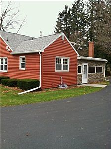 Quiet Village Home On Acre+ Promises Privacy Within Walking Distance of School, Stores, Library, And Restaurants. Well Set Back From Road, This Home Offers Four Bedrooms, Living Room With Fireplace, Spacious Eat-In Kitchen And Lovely Dining Room With Wood Stove And Built-In Corner Hutch. Off The Circular Paved Driveway Is A Fully Insulated Enclosed Porch With Slate Floor And Franklin Stove. A Two-Car Garage With A Full Attic Helps To Complete This Property. Large Lawns And Perennial Beds Flank Stone Stairs To The Upper Park-Like Parcel. Efficient Oil Heat And Hot Water. Village Living With Privacy And A Peaceful Setting --- A Perfect Space For You And Your Company!