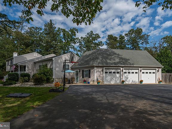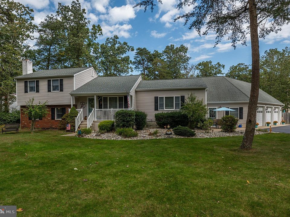 Looking for a unique & beautifully updated home in a peaceful & serene setting with your own personal outdoor oasis then look no further! This Tabernacle beauty is perfectly situated on a sprawling corner lot with a resort-style back yard with an incredible, concrete in-ground pool which has been recently re-tiled & re-coped with a gorgeous slate tile(2022)! Meticiously manicured grounds with an 8-zone sprinkler system, oversized driveway and an expansive, attached 3-car garage(with attic storage) welcomes you to this amazing home! Steps up from the garage leads you to a bonus room with newer laminate flooring(2021), which is currently being used as an office, and patio door which gives access to the amazing backyard, which consists of a large Trex deck, which steps down onto a fenced in area(fence replaced 2019) with a shed and pathway that leads to a separate entrance to the garage. Follow down the path to a black iron fence that leads you to the exquisite pool area that is truly a slice of paradise and will provide you with tons of space for entertaining or just a peaceful retreat. There is also a large fire pit for your enjoyment! Stepping back into the house, the bonus room leads you to the gorgeous, expansive eat-in kitchen with cathedral ceilings, skylights and an abundance of natural lighting, beautiful maple cabinetry, new granite countertops(2016), newer appliances(2016), gorgeous stone backsplash, laminate flooring(2021). Cozy living room located right off the kitchen with gorgeous hardwood flooring, cathedral ceilings with 2 ceiling fans & large windows overlooking the front porch and manicured front yard. Spacious master bedroom located on the main floor with newer laminate flooring(2021), cathedral ceilings, 2 walk-in closets and updated master bath with tile flooring and tiled shower and soaking tub. Steps off the living room lead you to the upper floor which consists of 2 spacious bedrooms with hardwood flooring and a recently remodeled tiled hall bath. Steps off the living room leads you down to the open and inviting great room which provides a multi-purpose space. Currently, it consists of a built-in bar, laundry room, gorgeous stone fireplace with Avalon wood burning stove, updated powder room and brand new patio door(2023) to the backyard. Other features of this amazing home: septic replaced in 2019, HVAC replaced in 2019, roof on main house replaced in 2015, 2 separate wells(house well pump replaced in 2017 & sprinkler system well pump replaced in 2023), 4ft cement crawlspace which houses the heater & 2 hot water heaters, entire house & front concrete walkway was just powerwashed. Seller providing a one-year home warranty to the lucky new owner with an accepted offer at closing! Wonderful location within walking distance to Patty Bowker fields and mins to major highways! Don't miss it!