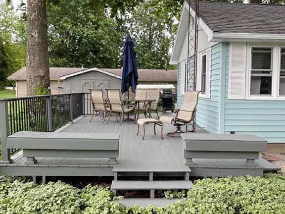 Absolutely ADORABLE, neat as pin, fresh & furnished (everything you see stays except the gas grill and some tools in the shed) "turn key" lake escape that's channel front on Kuhn Lake with access to 7 lakes total including Big and Little Barbee!!