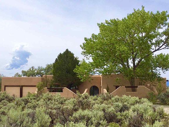A Secret garden oasis conveniently nestled on one acre between the historic Taos plaza and the Taos Ski Valley. Set back from the road, this beautiful, 3 bedroom , 2 1/2 bath, with a study/bonus room is an authentic adobe home. Beautifully remodeled kitchen has gorgeous granite countertops and tons of storage with lazy Susan cabinets in each corner. Fabulous mountain views in every direction will entice you to "stop" in Taos forever. There are front and back courtyards with views, privacy, dining space, a hot tub and gorgeous, established gardens. Unique features such as vigas, nichos, bancos around a kiva fireplace, rare and unique light switch plates and beautiful tiles all add to its' Taos charm. Sierra Pacific windows, an upgraded furnace and thick (recently color-coated) adobe walls, keep the house warm in winter and cool in the summer. Drip irrigation and a private well make watering the garden easy. This beautiful home will make your Taos dreams come true!