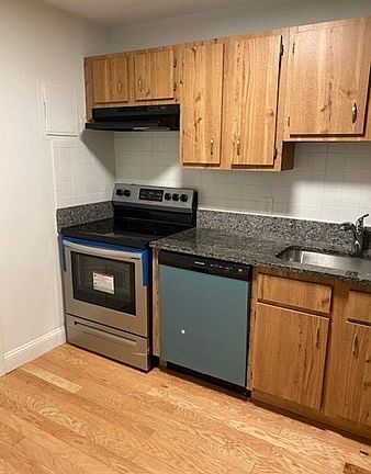 Spacious recently renovated one bedroom rental is located in Emerald Woodland complex. Wood flooring throughout. It has a large living room with its own balcony and exposed brick wall. Granite countertops and stainless steel appliances in the kitchen. There is a dining area with breakfast bar and a ceiling fan. Bedroom can fit a queen size bed and have nice closets. There is a linen closet next to the bathroom. Unit is heated by electric baseboard heat and is very economical due to the municipal electric company. The unit comes with an A/C that cools the whole place. and extra storage is in the basement. Close proximity to major routes and train station for easy commute to Boston or Providence. Landlord requires excellent credit, good employment history and references. No smoking in unit.