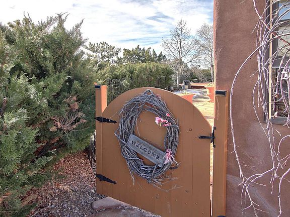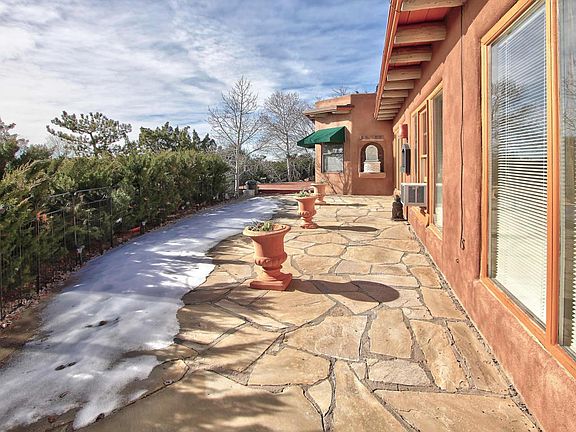 Fabulous views and location in Eldorado! This beautiful home offers 3 to 4 bedrooms, is drenched in sunlight with gleaming brick floors,wood ceilings, vigas, and a Chef's kitchen! The best parts of this home are the extended front and back patios which are ideal for entertaining and outdoor living, the back patio has been expanded w/garden beds,covered bar area, and fully enclosed, while the front patio invites the warmth of the sun and expansive views.