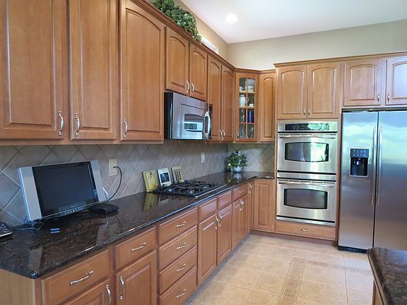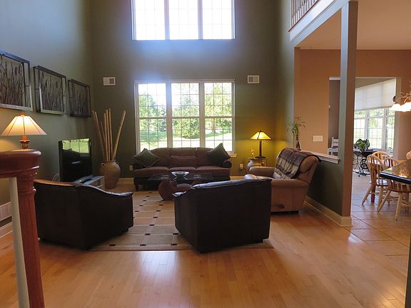 Covered porch shelters entry to 2-sty Foyer. Open flrplan features kitchen w/gourmet appliances, lg expanse of granite cntrs, separate brkfst area open to sunroom w/slider to private, bermed yard & adjacent to 2-sty Great Rm w/wall of windows. Mstr Brm suite features tray clg, fitted WI closet and bath w/roman tub & shower. 1st flr guest brm is adj. to full bath. Two addl brms