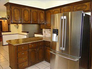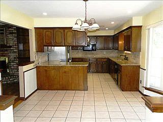 Delightful dining patio overlooks the sparkling pool and nice landscaping! This home has it all! Granite counters in kitchen, baths and laundry room, polished hardwood floor in living area plus brick fireplace flanked by bookshelves. Lots of cabinets in kitchen plus stainless refrig. Updated baths, slate tile around tub, whirlpool. Large strg building and small greenhouse. 1 acre lot just minutes from golf course. Come home to comfort!