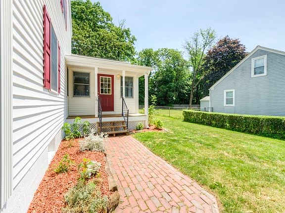 Wonderful opportunity to own this spacious cape located within minutes to all city conveniences and highways. Front living room with a bow window plus a formal dining room, both featuring hardwood floors. The first floor den was once the third bedroom and could easily be converted back if needed with simply adding a door. The kitchen with cherry cabinets, breakfast island and pantry closet opens to the sun room, accented with a glass door to the deck and patio overlooking the large rear yard with a storage barn. The first floor bath with a tile floor offers a walk-in shower. Both bedrooms on the second level are 20' in length, very generous in size and offering dual closets. In the primary bedroom a pocket door leads into the private bath with a large soaking tub. Anderson windows, 6 panel solid wood doors, vinyl siding, level yard, the barn is ideal for many uses other than storage. Rebuilt about 20 years ago with quality and comfortable living in mind.
